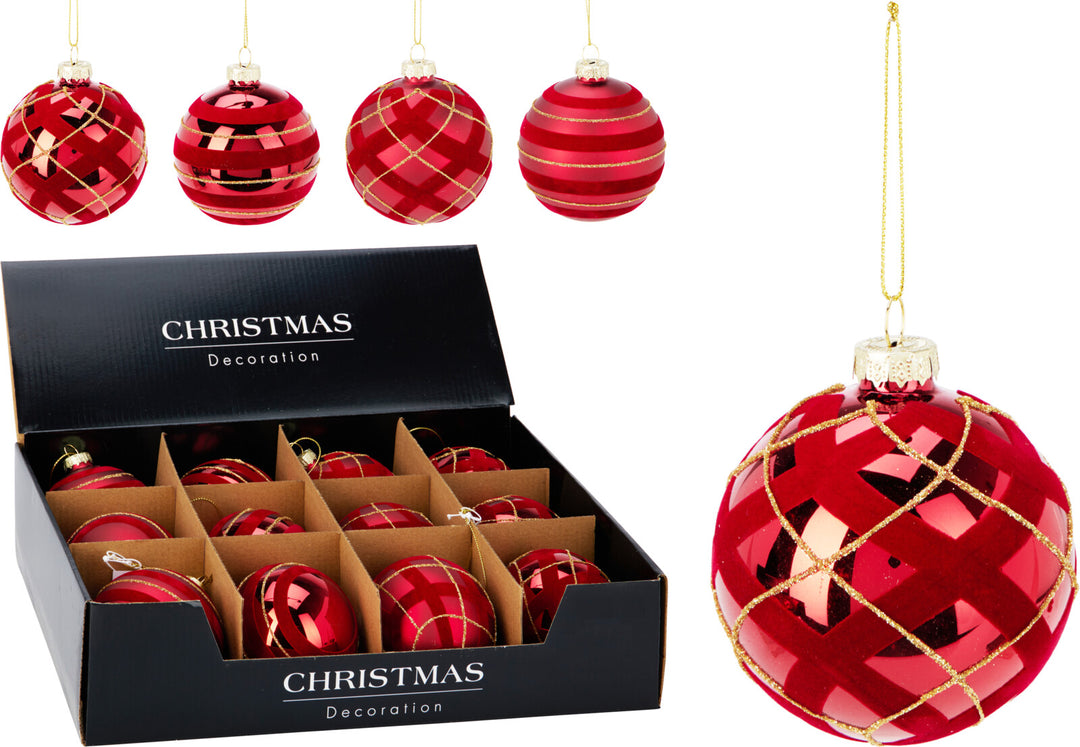 Palline di Natale in Vetro Rosse 8 cm Decorate – 4 Assortimenti (cod. ABR220950) – Kerst