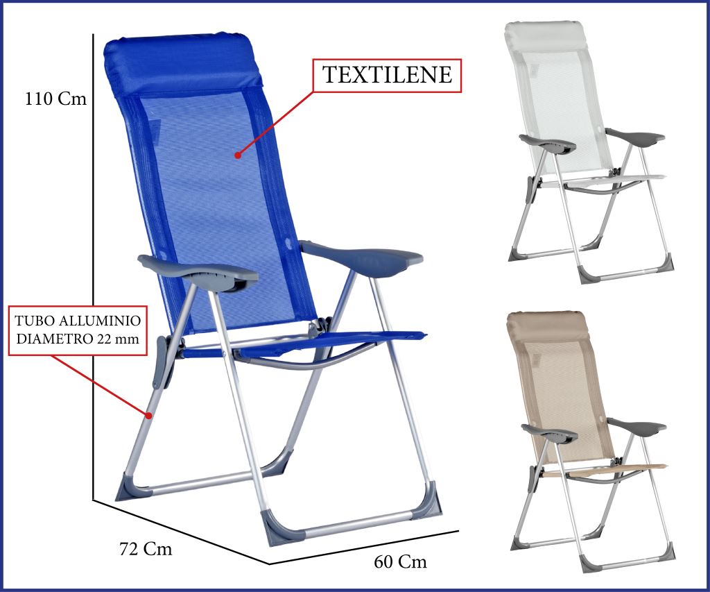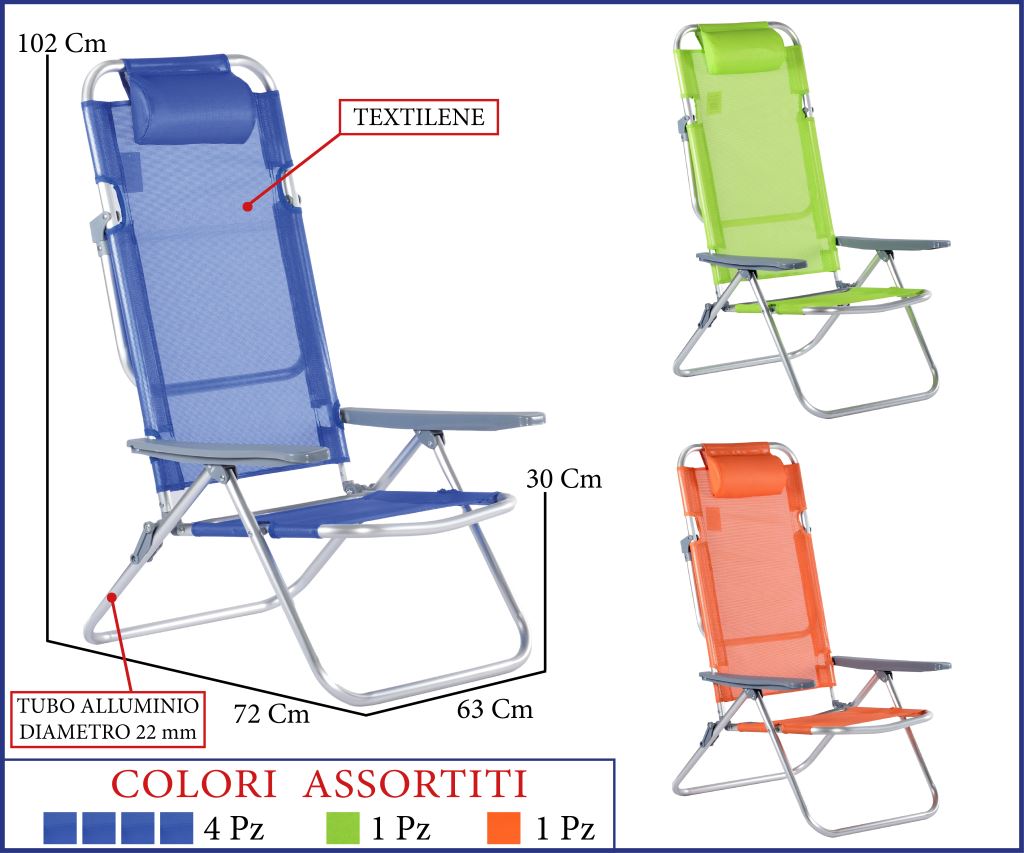 SPIAGGINA BIG ALLUMINIO 5POS. CM72X63H102