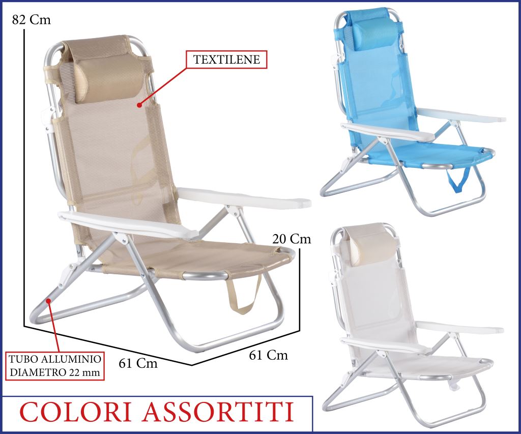 SPIAGGINA CONFORT 5POS. ALLUMINIO 61X61H82