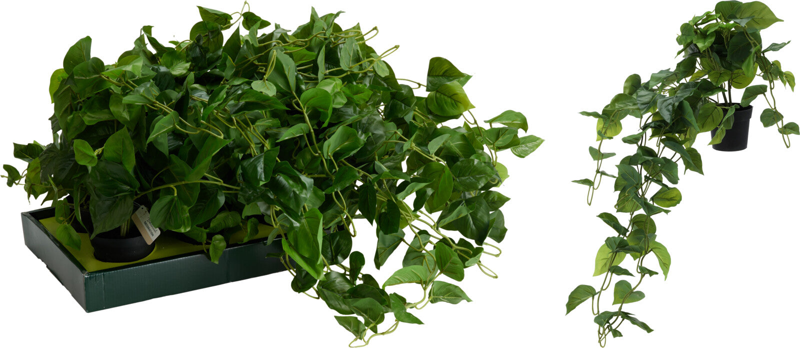 Pianta artificiale pensile con vaso, dal design compatto e realistico, ideale per aggiungere un tocco verde discreto e decorativo agli ambienti interni. La forma ricadente la rende perfetta per mensole, librerie e composizioni sospese.