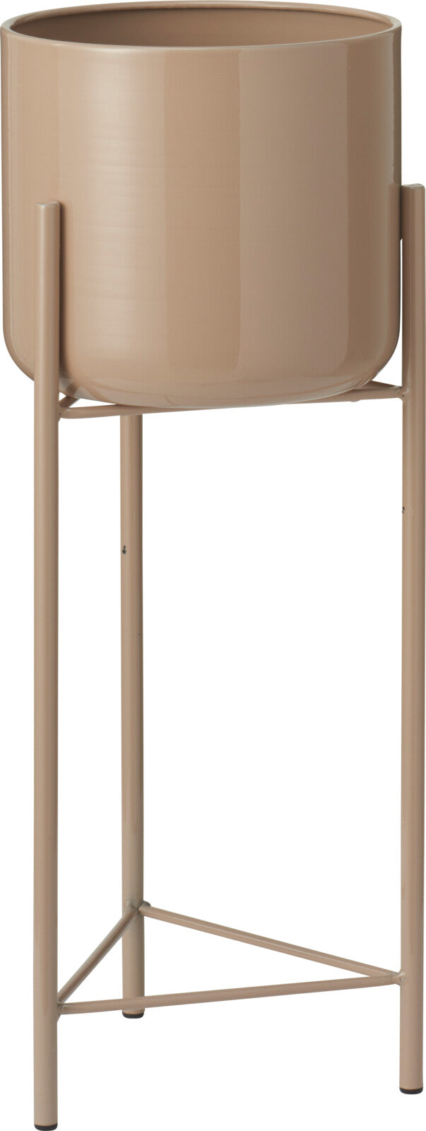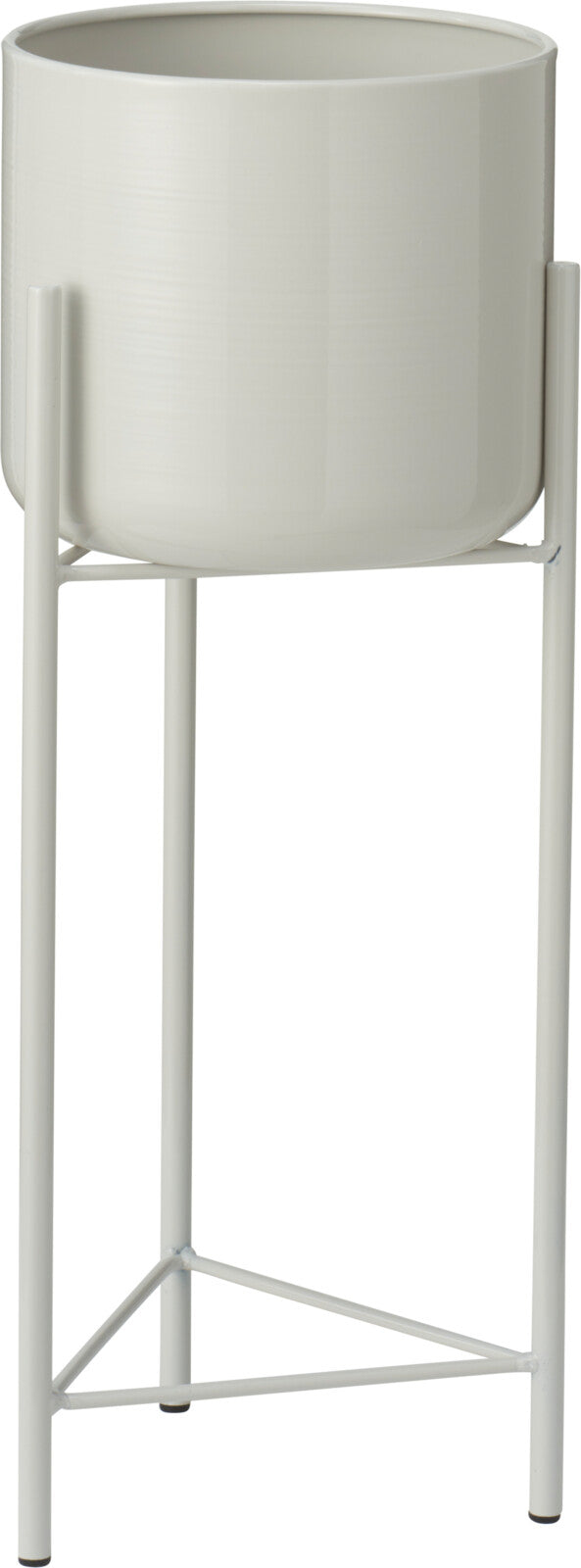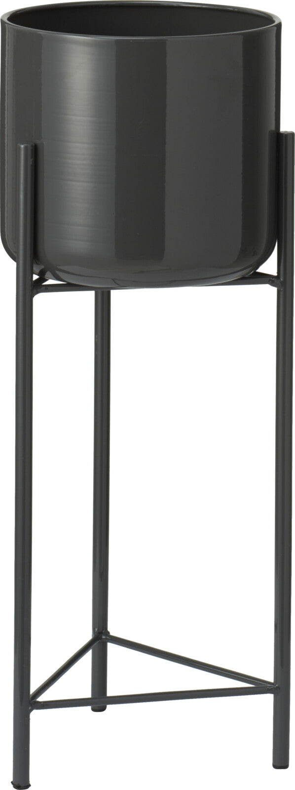 Fioriera in metallo con supporto dal design moderno ed essenziale, ideale per valorizzare piante artificiali o decorative in ambienti interni. La struttura slanciata e le linee pulite la rendono adatta a spazi contemporanei e minimal.