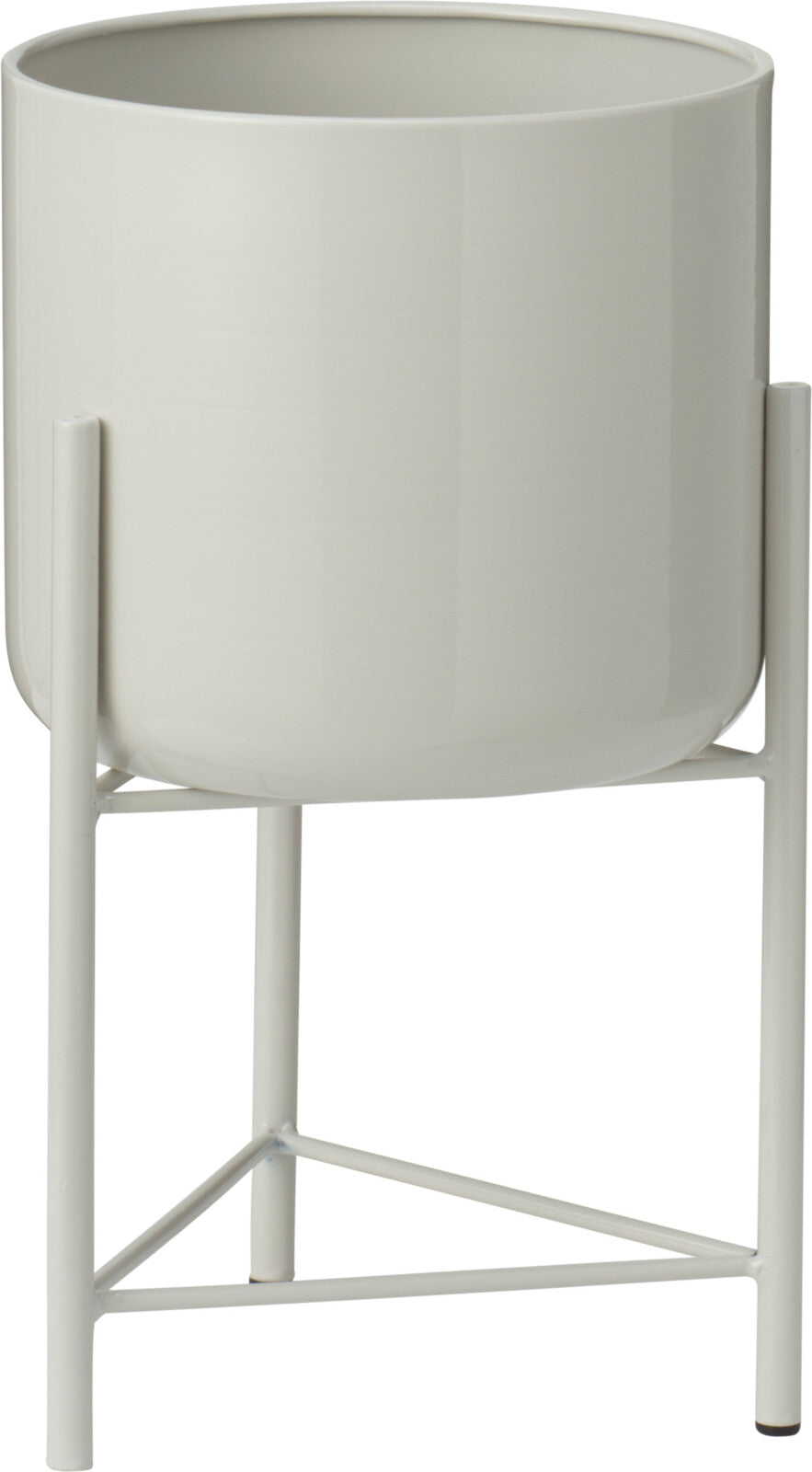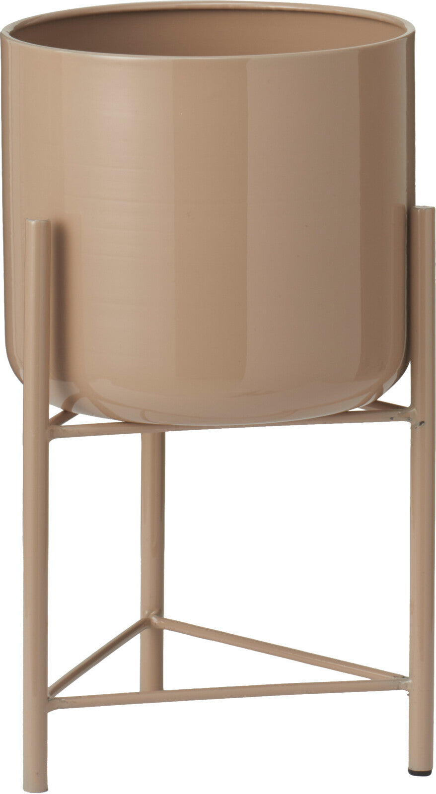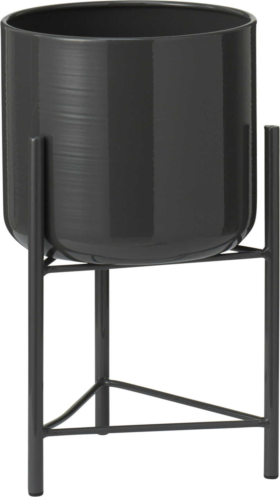 Fioriera in metallo con supporto dal design moderno ed essenziale, ideale per valorizzare piante artificiali o decorative in ambienti interni. La struttura slanciata e le linee pulite la rendono adatta a spazi contemporanei e minimal.