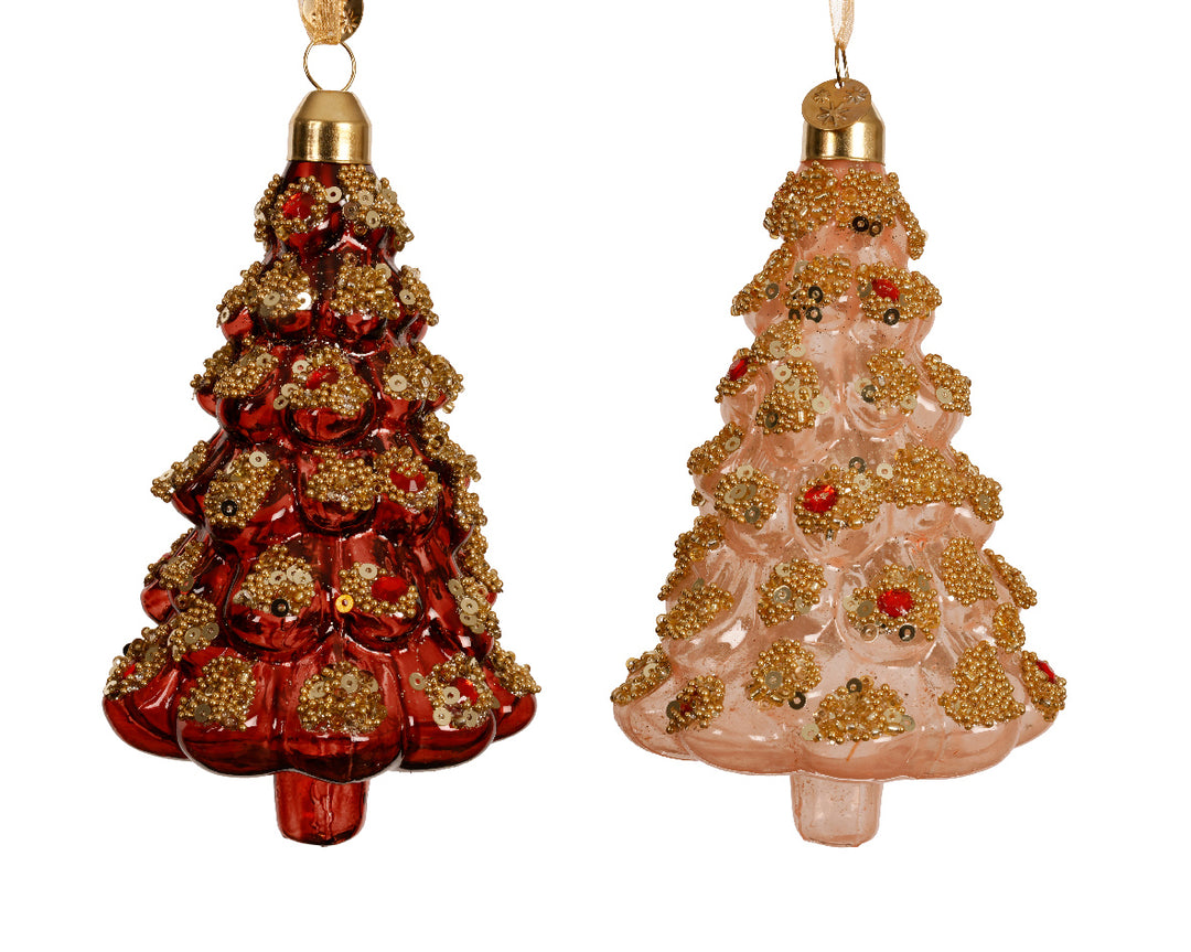 Alberello in Vetro con Perline e Paillettes Ø 7,5 × H 12 cm – 2 Colori Assortiti (cod. 122232)