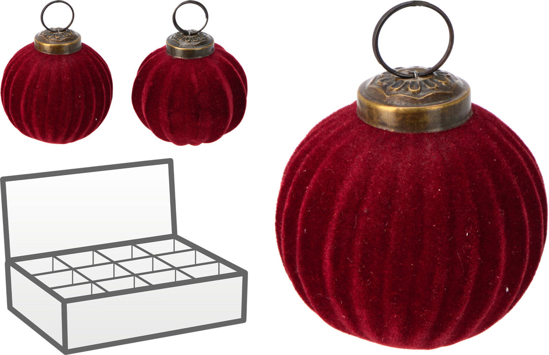 12 Sfere Natalizie in Vetro Floccate Rigate – Rosso e Verde