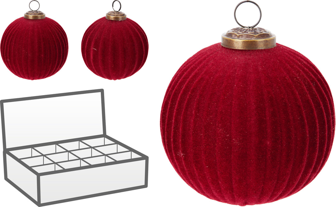 12 Sfere Natalizie in Vetro Floccate Rigate – 10 cm