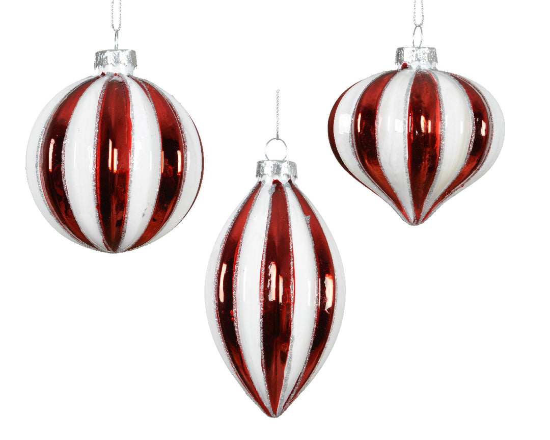 Set 12 Palline in Vetro – Bianco e Rosso a Strisce (cod. 071374)