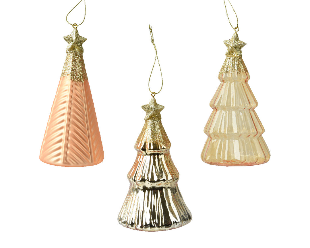 Set 12 Alberelli in Vetro con Stellina Ø 6,7 cm x H 12,6 cm – 5 Varianti Colore