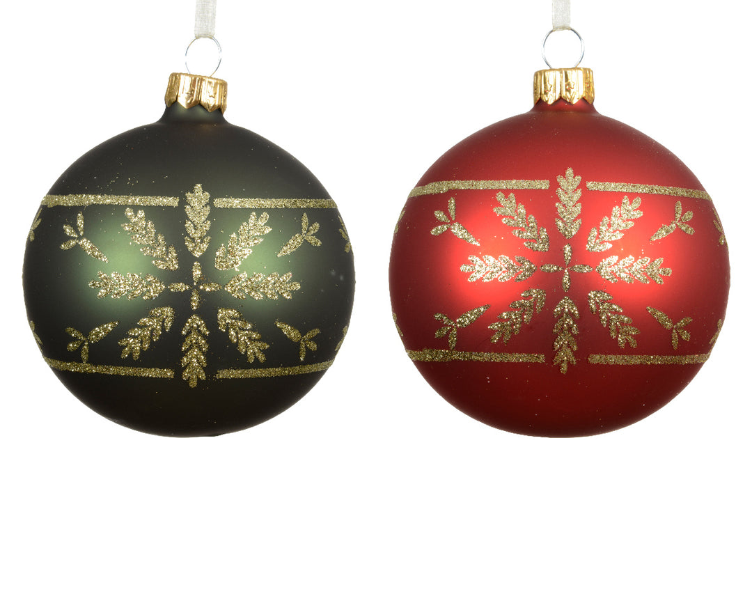 Set 6 Palline in Vetro Ø 8 cm – Rosso e Verde Matt con Decoro Fiocco di Neve (cod. 081106)