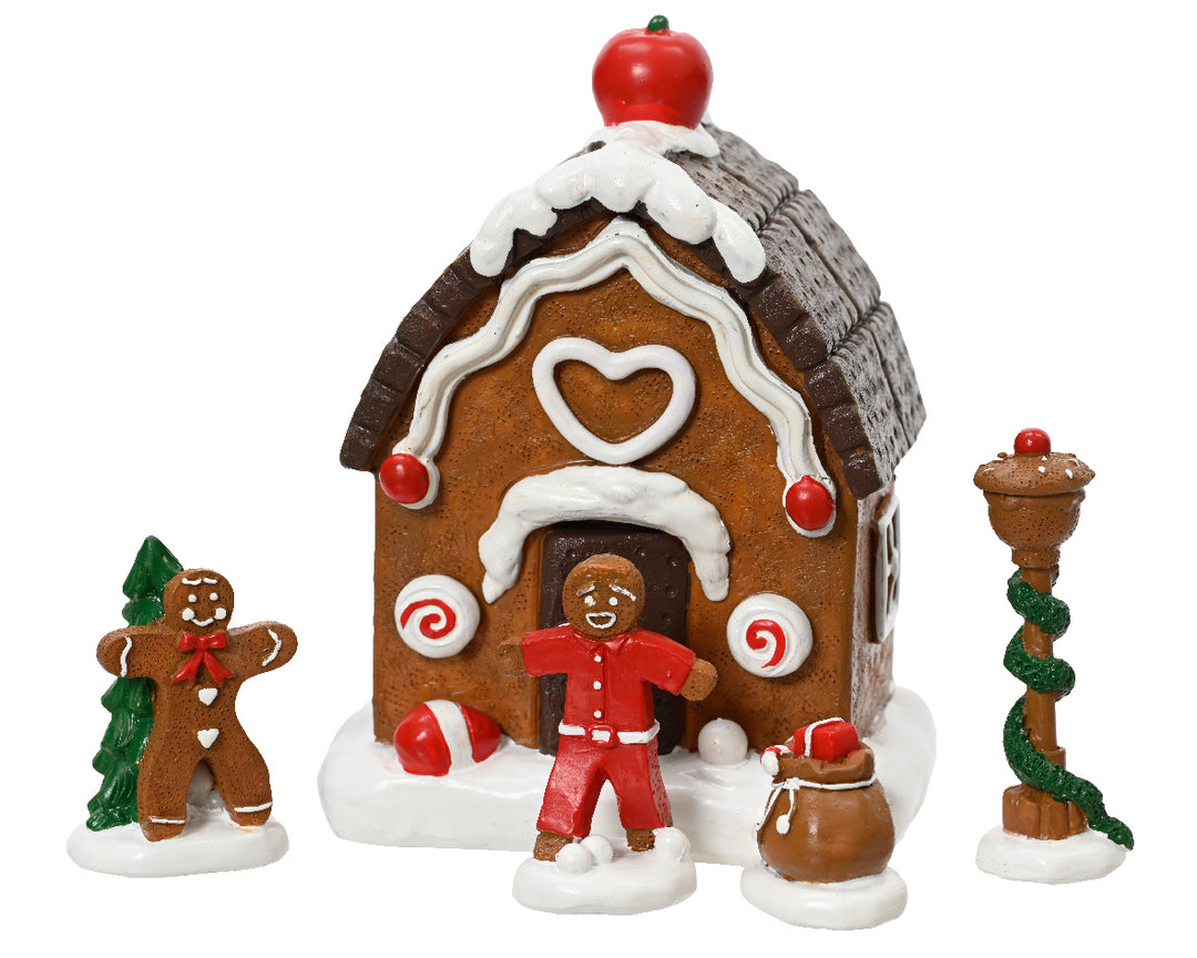 Set Figurine e Accessori in Poliresina per Villaggi Natalizi – Blister 5 pezzi (cod. 488433)