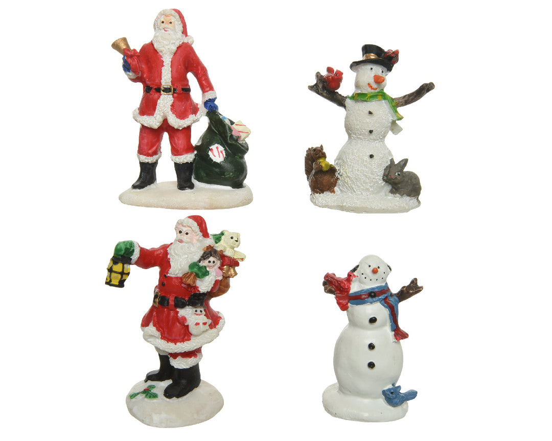 Set a 2 Figurine Babbo Natale; Pupazzo di Neve in Resina – 2pz Assortiti (cod. 488478)