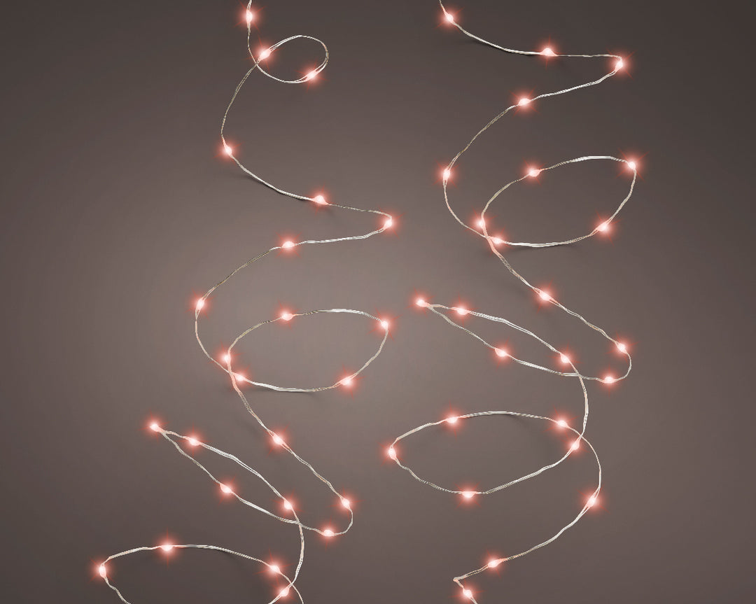 Catena Luminosa a Batteria con 60 Micro LED Bianco Caldo – Cavo Argento, per Interno, Timer 6h (cod. 483778)