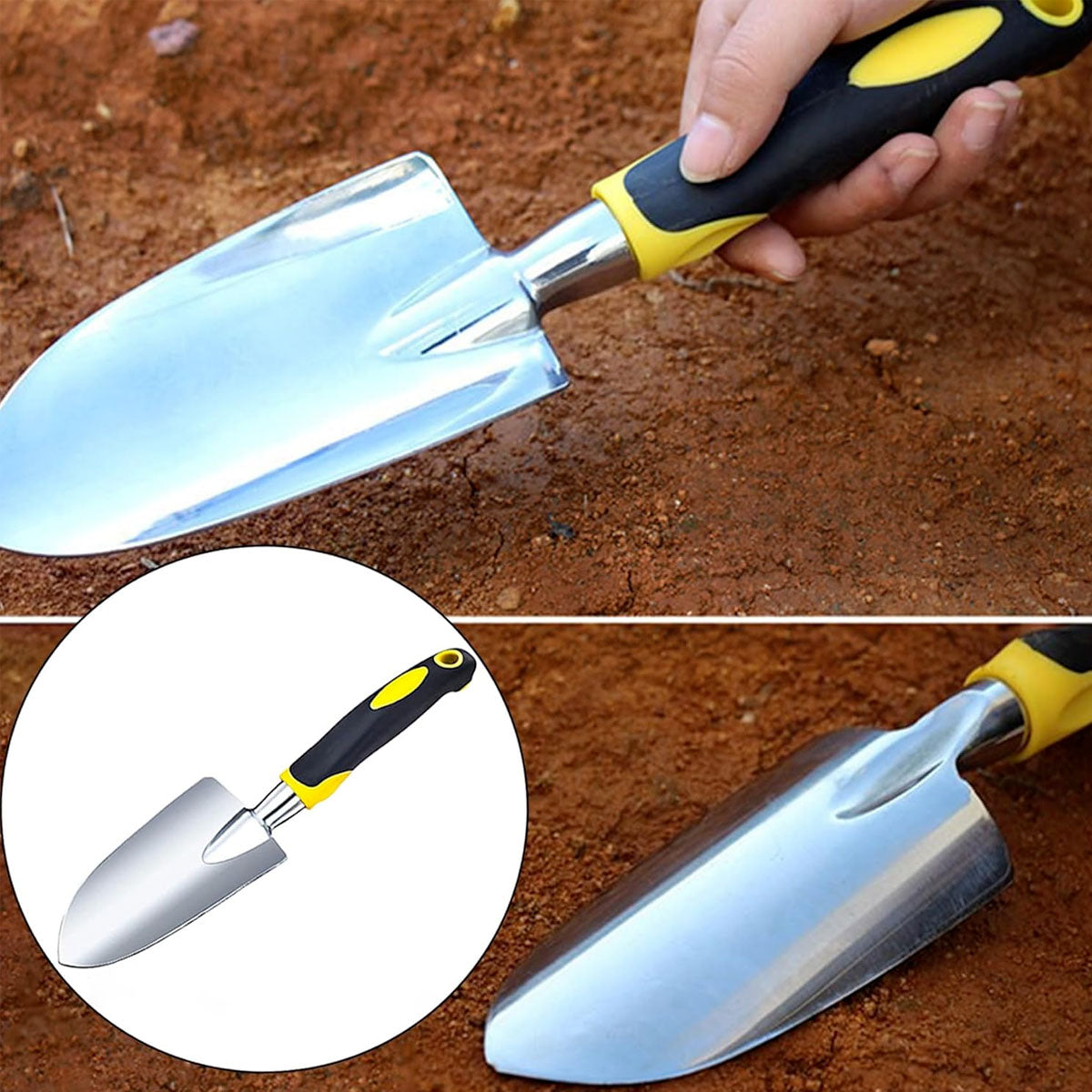Paletta da giardino a mano, con manico ergonomico bicomponente soft touch.