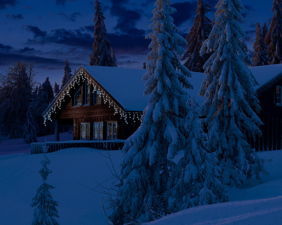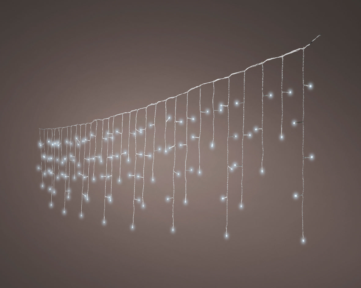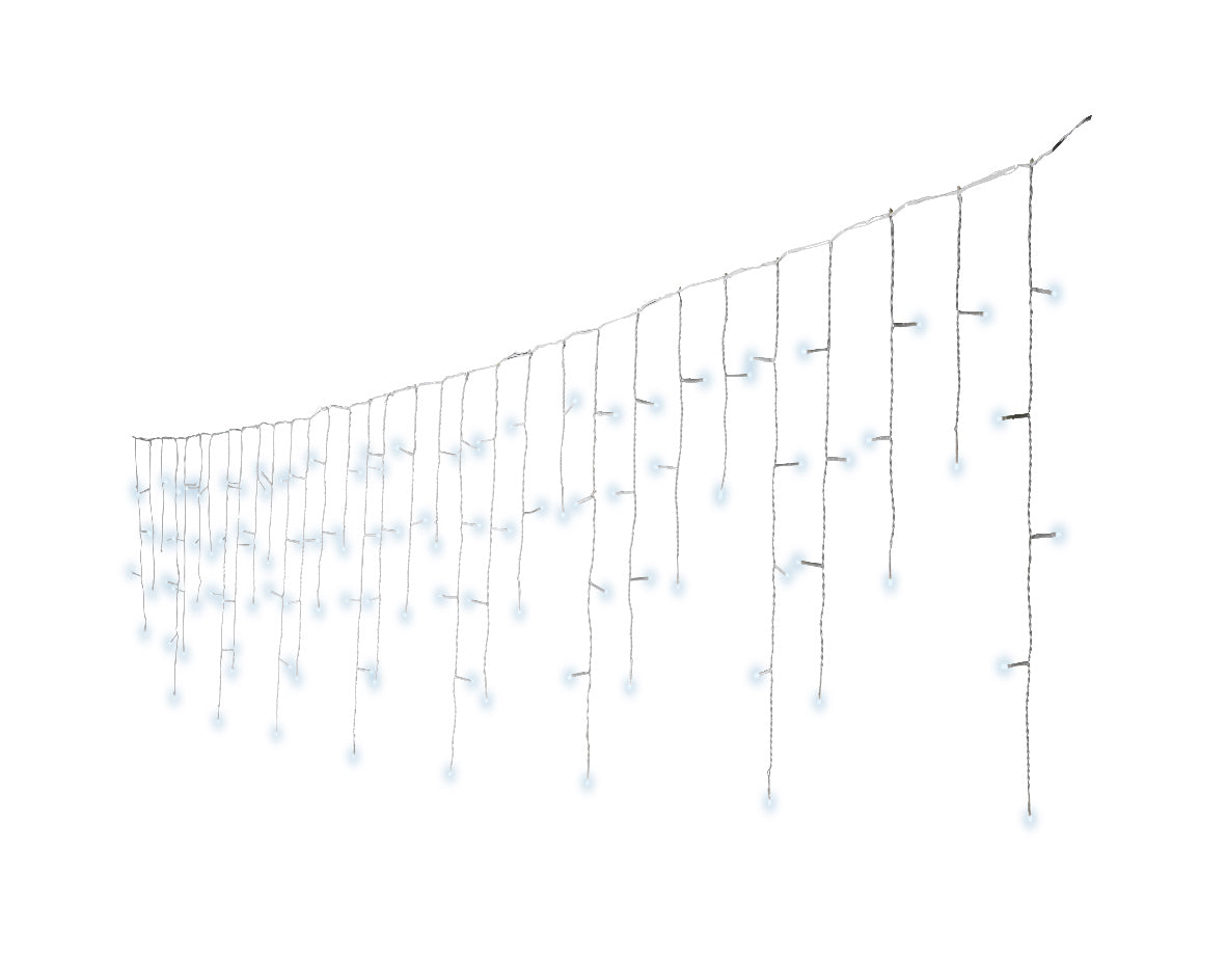 Catena luminosa a ghiacciolo con 490 LED bianco freddo, con 8 funzioni ad effetto scintillio e timer.