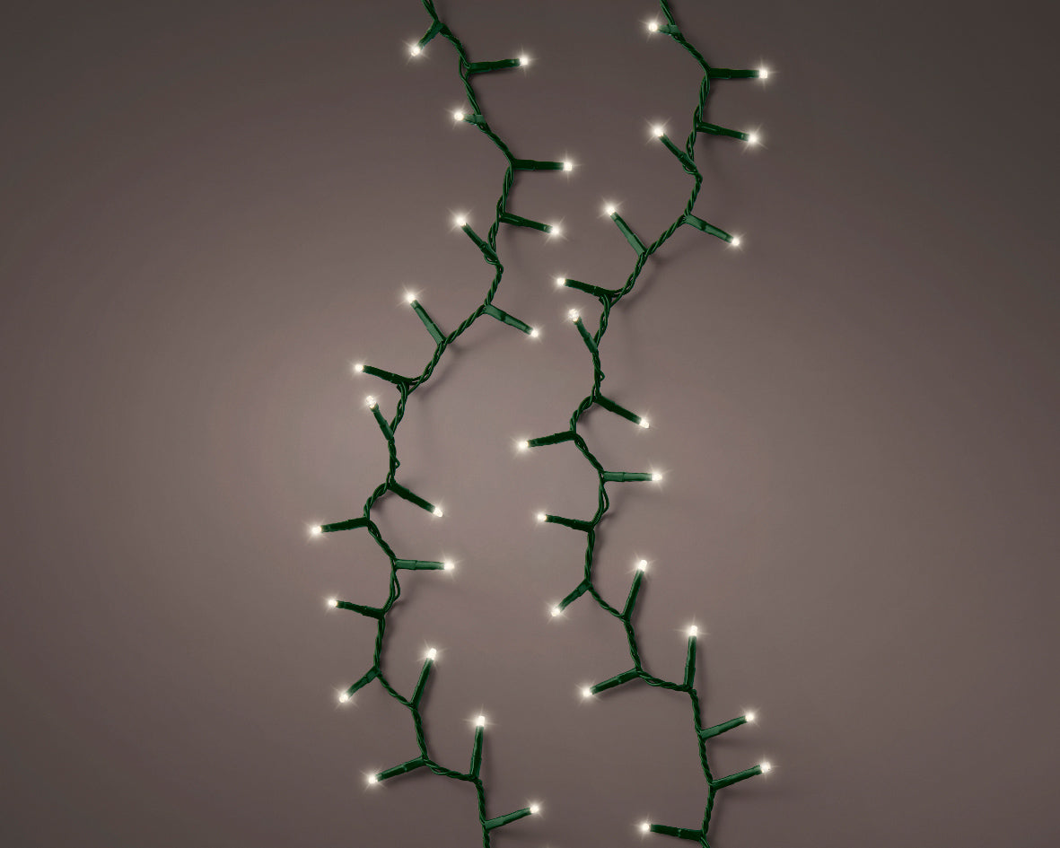 Catena luminosa LED Compact lunga 60 metri con 3000 LED (3 mm), 8 funzioni twinkle effect e timer 8 ore. Perfetta per grandi decorazioni esterne grazie al grado di protezione IP44. Con cavo verde e trasformatore incluso. Disponibile in 3 varianti di colore LED: Cool White, Warm White, Classic Warm.