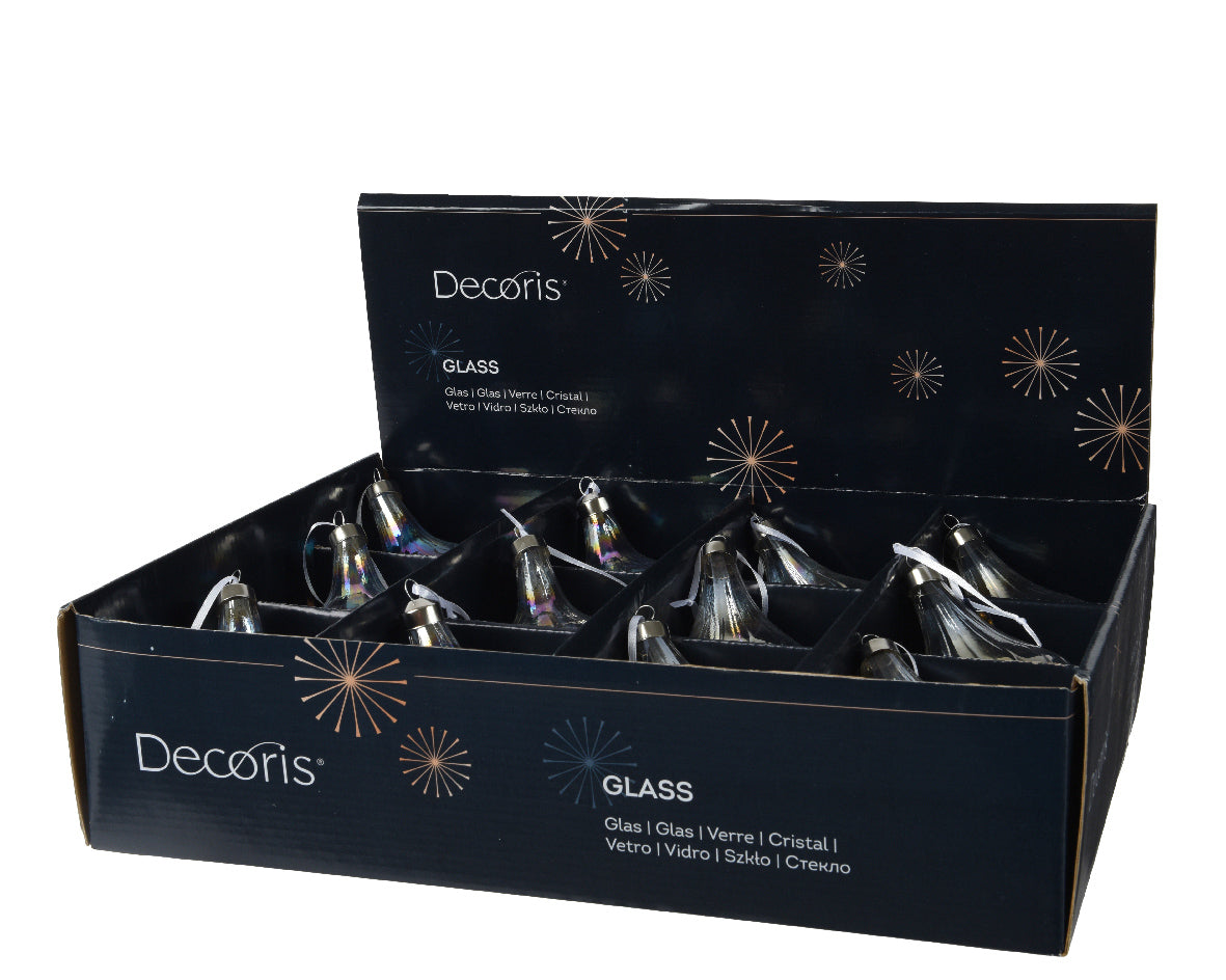 Palline natalizie in vetro Ø 10 cm, 12pz, disponibile in 2 varianti di decoro coordinate. Ogni modello presenta finiture di pregio per un look elegante e luminoso, perfetto per arricchire l’albero di Natale.